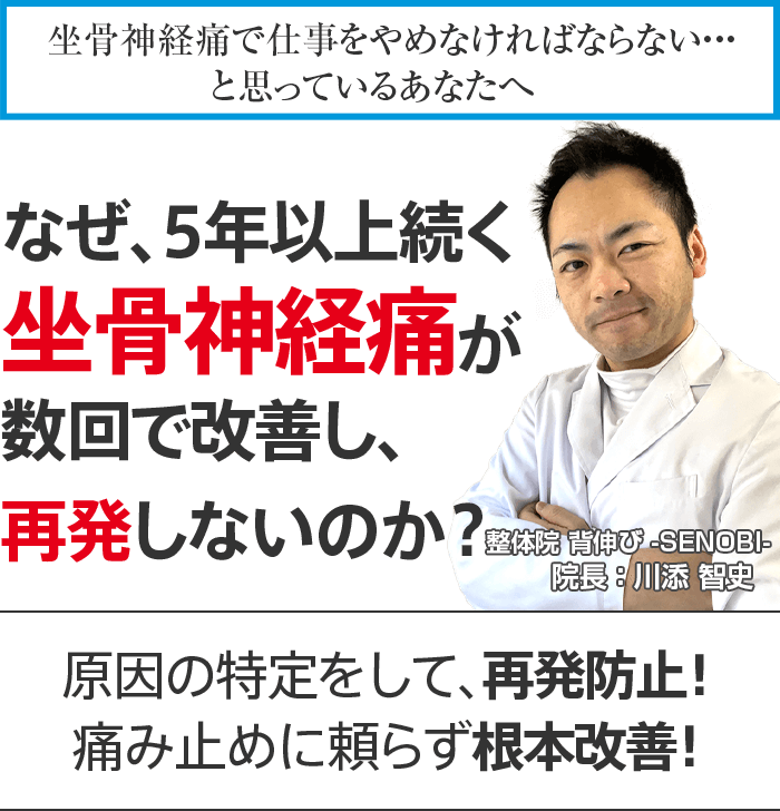 あなたは̈改善結果が実感できない坐骨神経痛の施術̈にまだ貴重なお金と時間を費やしますか?私はつらい坐骨神経痛であなたに悩み続けて欲しくないです。